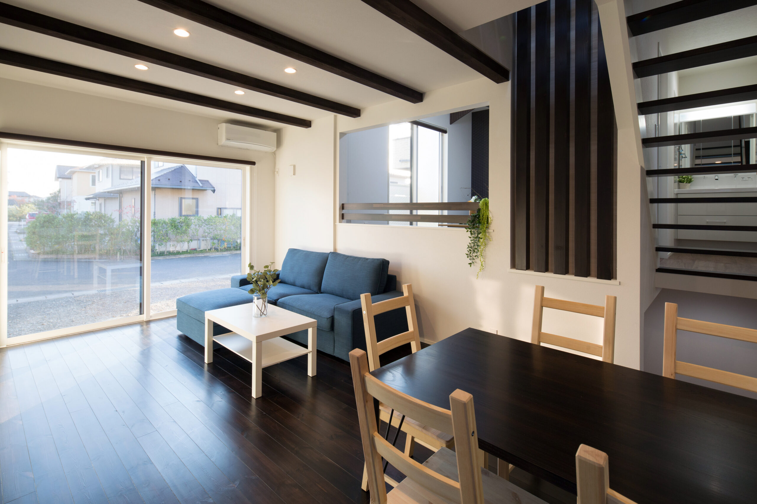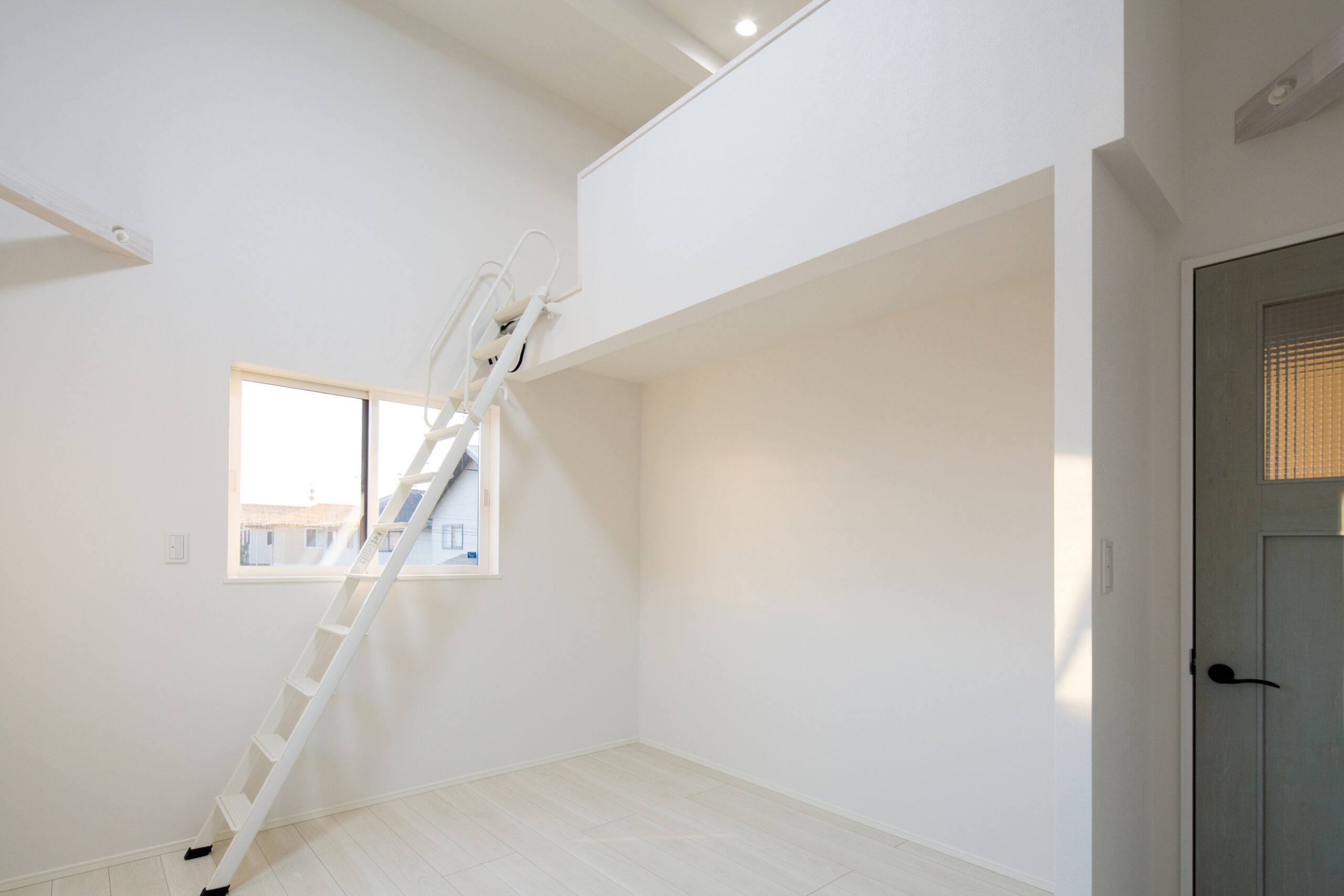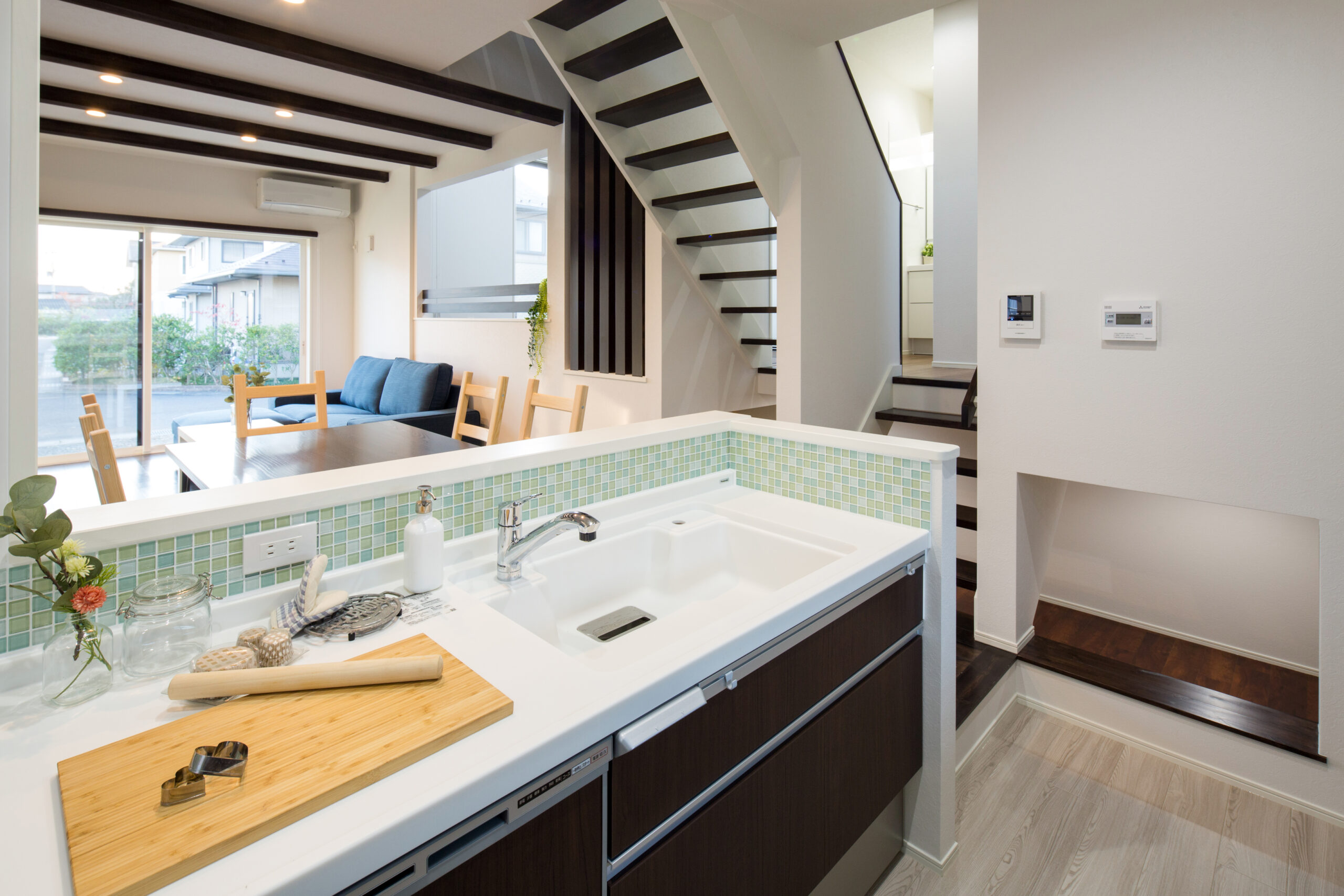 ダイニングから一段下がったキッチンや床下書斎、子供部屋にはロフト、オープン階段など、フロアに高低差を設けることで開放感あふれる空間デザインを実現しました。