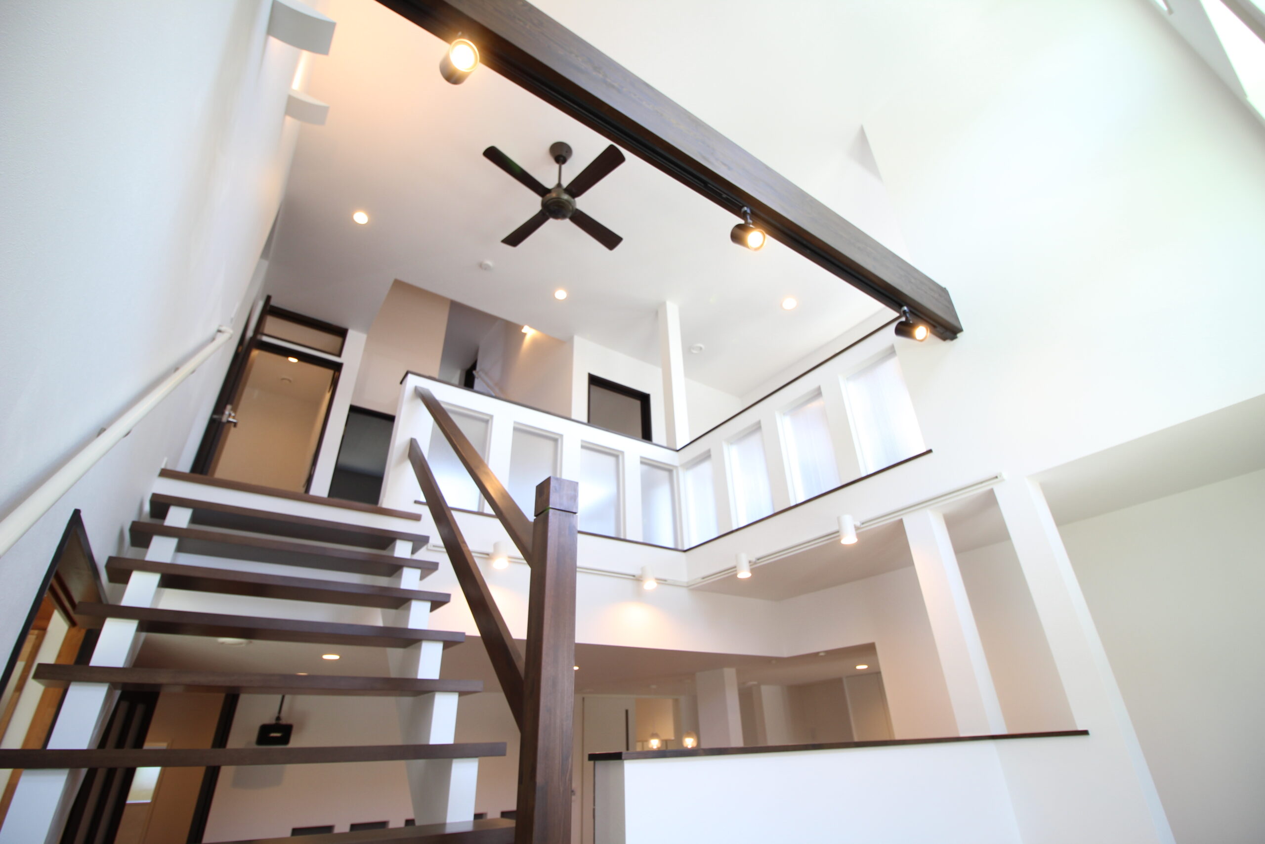 高気密高断熱でありながら、リビングの「大空間」を実現したお家。また、吹抜や中二階にはファミリースペースもあり2階との繋がりを感じられる設計に。
