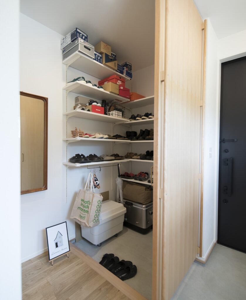 主人はソフトボールが趣味なので、玄関脇の土間はグローブなどの道具の手入れや保管をするのに重宝しています。これから庭にはウッドデッキをつけて、ターフも設置したいなと思っています。友人を呼んで庭でバーベキューをするのが楽しみです。家族で過ごすひとときはもちろん、友人との時間も楽しめる家になったと思います。