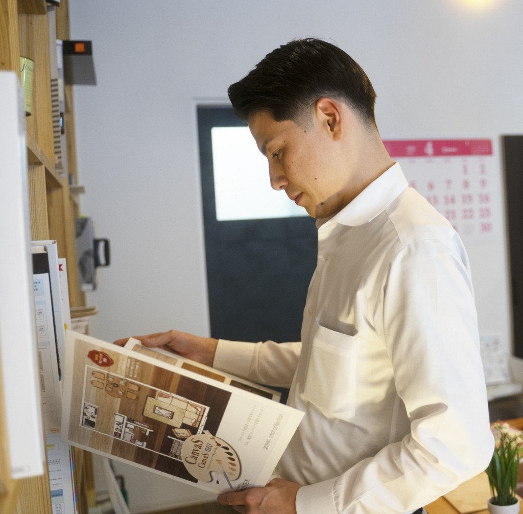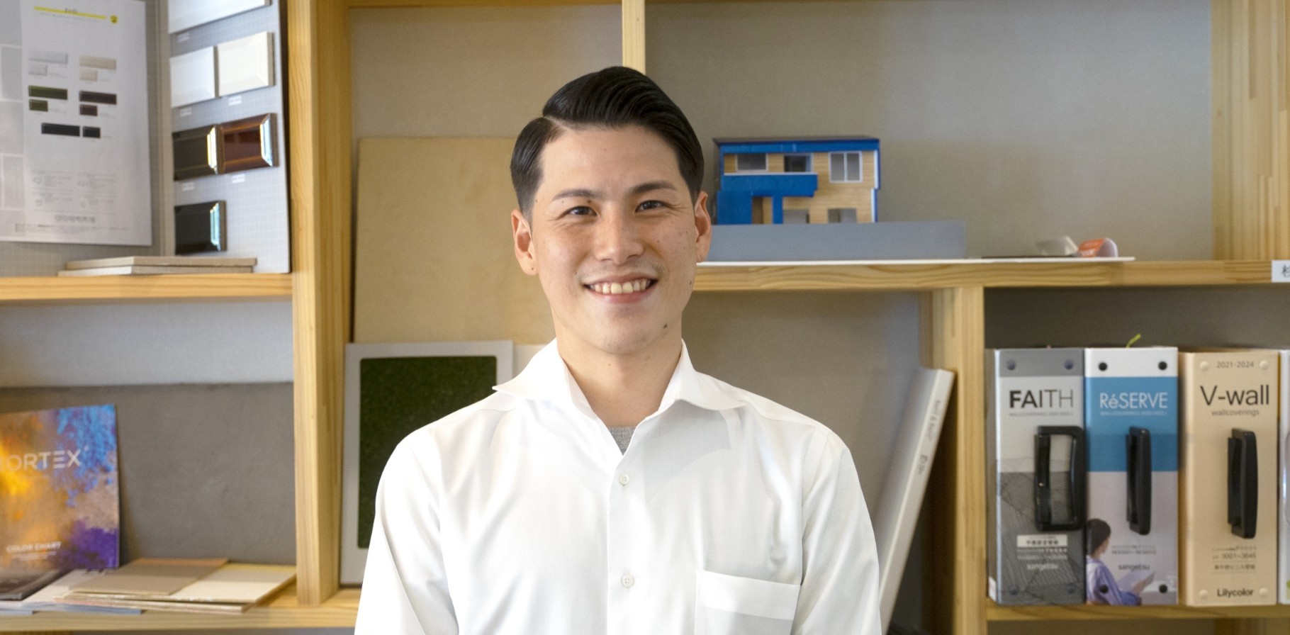 私は住まいづくりの過程において、お客様とのはじめの接点になる部門を担当しています。お客様の「こんな家を建てたい」というイメージや、ご要望をおうかがいし、住まいの大まかな間取りやデザインに関する基本設計のご提案を行っています。ヒアリングをもとにプランを考えるため、ヒアリングの中身がとても重要です。例えば、奥様はミニマルで手のかからないつくりにしてほしい、旦那様は趣味の道具を置くスペースがほしいなど、住まいに求めるものがご夫婦それぞれ違います。そのため、生活シーンが鮮明にイメージできるようなヒアリングを行い、お客様のライフスタイルにマッチしたプランに磨き上げることが大切です。また、設計プランを考える際には、お子さまの成長やお客様のセカンドステージのことも考え、未来を見据えた自由度の高い住まいであることも大事な要素です。プランが決まってからの実施設計、施工はそれぞれ別の社員が担当していますが、お客様のご要望をご相談当初からよく知る私も、家の引き渡しまでご一緒しています。お客様と共に前のめりになって、理想の住まいについて考える時間が、私は一番楽しいと感じています。